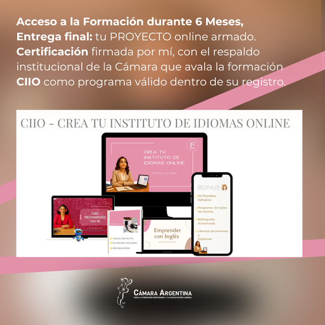 Con la Formación “Crea tu Instituto de Idiomas Online” DESDE 0 vas a crear un negocio integral de idiomas, que te permitirá construir una estructura sólida y escalable, para que puedas crecer sin depender exclusivamente de clases individuales.